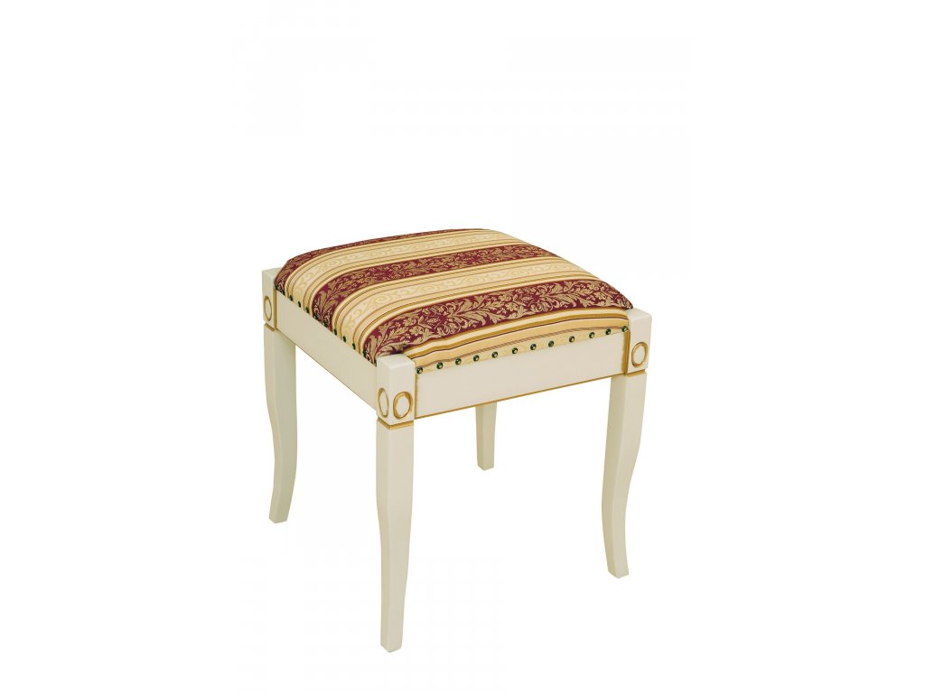 Zdobné prvky na rozích taburetu jsou ručně vyřezávané, s precizností, kterou dnešní masová výroba neumí nabídnout. Každá křivka, každý ornament je výsledkem práce zkušených řemeslníků.