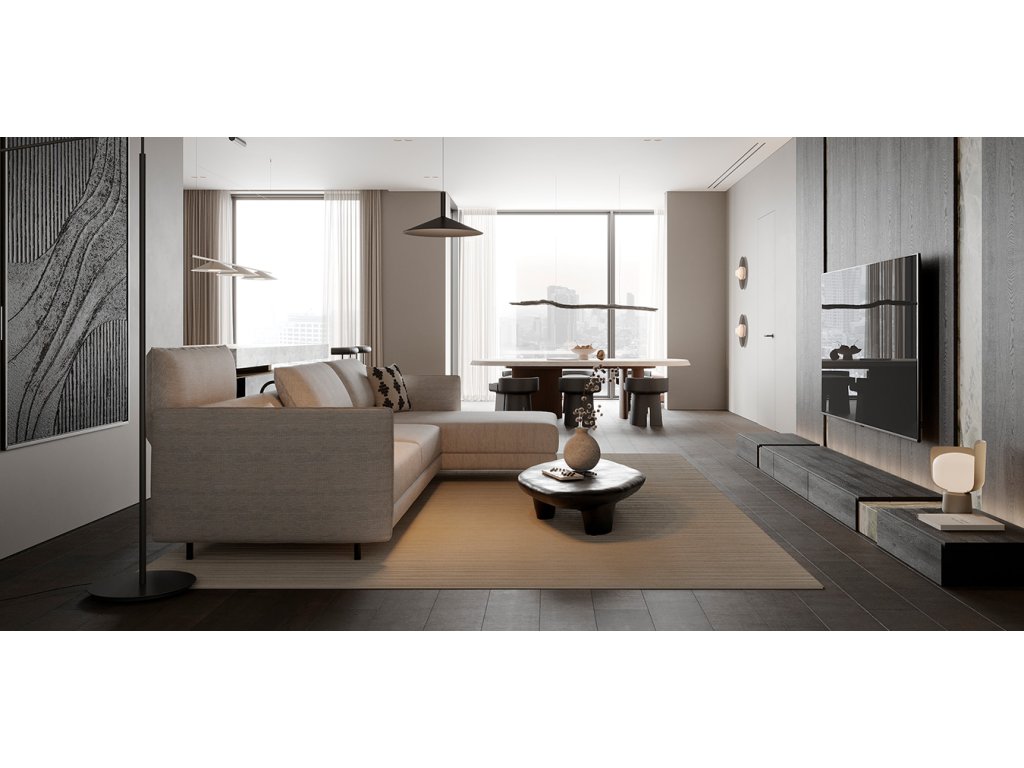 - Otoman rozvíjí vizuální koncept do větší, pohodlnější sestavy a přidává využitelnou plochu pro relax i spaní.