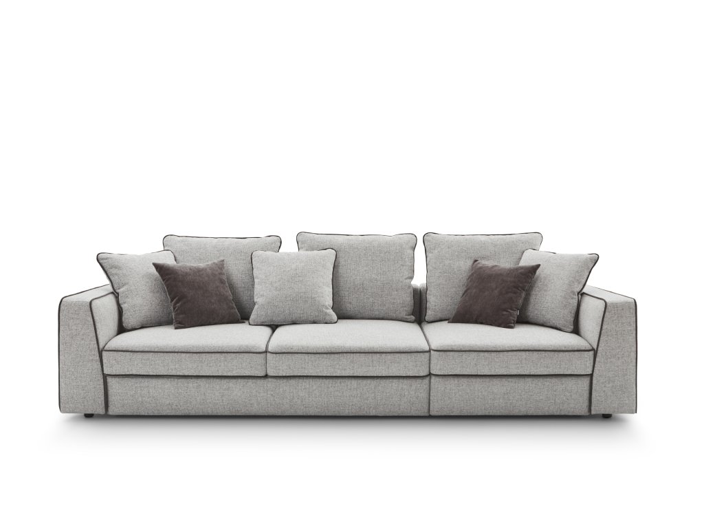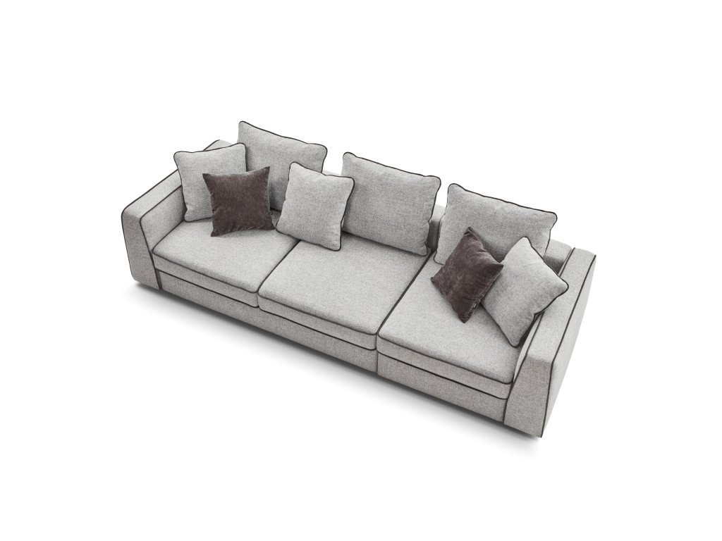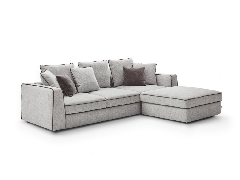 Hladké, moderní linie s charakteristickým dekorativním lemováním na sedáku, polštářích i područkách.