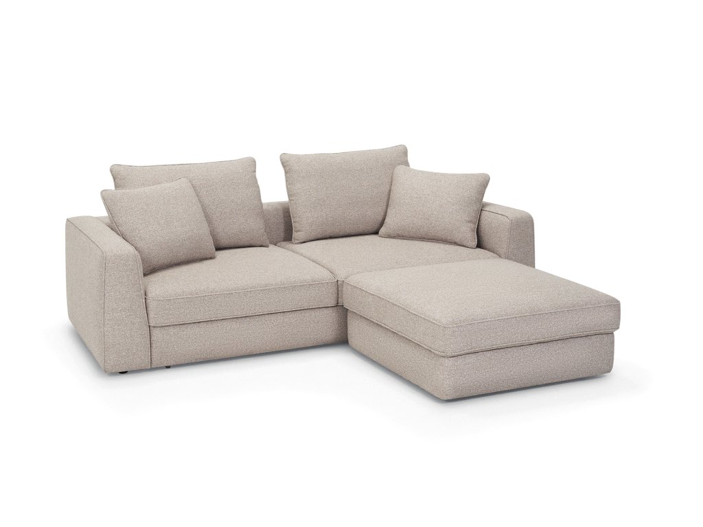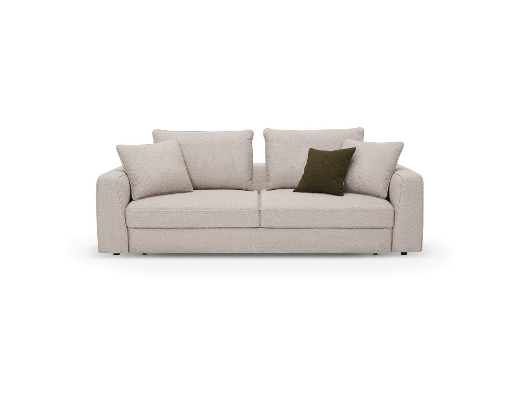 Vzdušný design bez kompromisů: nízké opěradlo a rozestupy mezi opěrnými polštáři vytváří pocit otevřeného prostoru. Váš interiér bude působit větší a lehčí – bez „masivní zdi“ za zády.