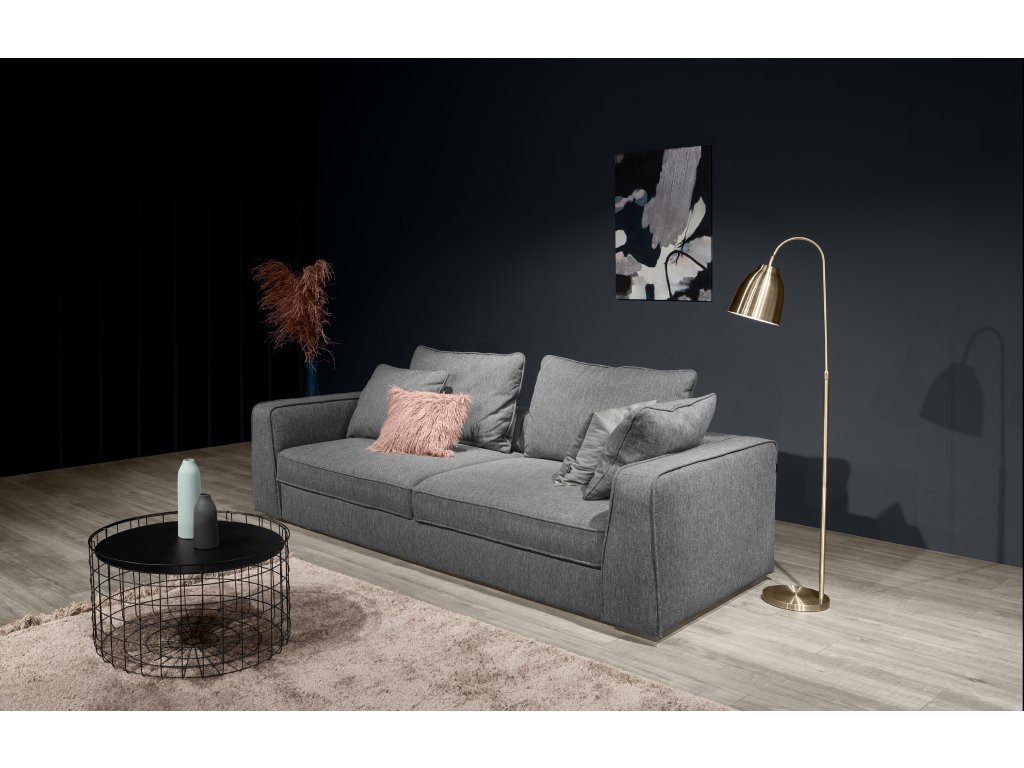 Nadčasový detail: dekorativní lemování na sedáku, polštářích i područkách zvýrazňuje čisté tvary a dodává pohovce jedinečný charakter.