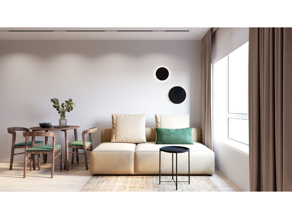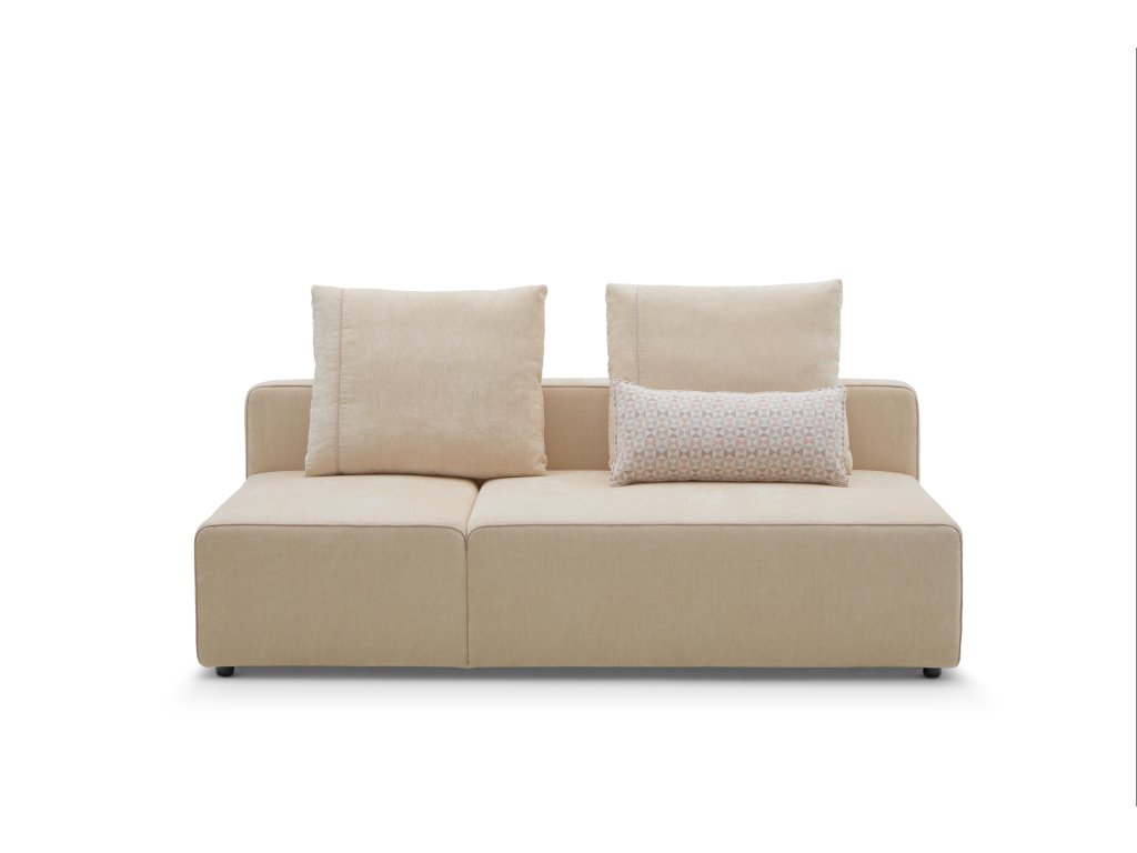 Olli vychází vstříc moderním interiérům, kde se počítá každý centimetr a každý prvek má smysl. Minimalistický tvar bez područek vizuálně odlehčí prostor a dovolí posadit více lidí, než byste čekali. Asymetrický střih sedáku vybízí ke hře s materiály: zvolte látku A na hlavní plochy, látku B jako doplněk pro akcent a vše orámujte lemem v tónu či v kontrastu. Od jemného monochromu po odvážné solitéry – Olli vždy působí čistě a upraveně.