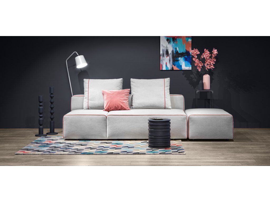 - Variabilní styl: asymetrický střih sedáku a možnost kombinovat různé látky a kontrastní lemování vytváří originální akcent v interiéru.