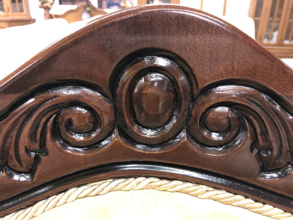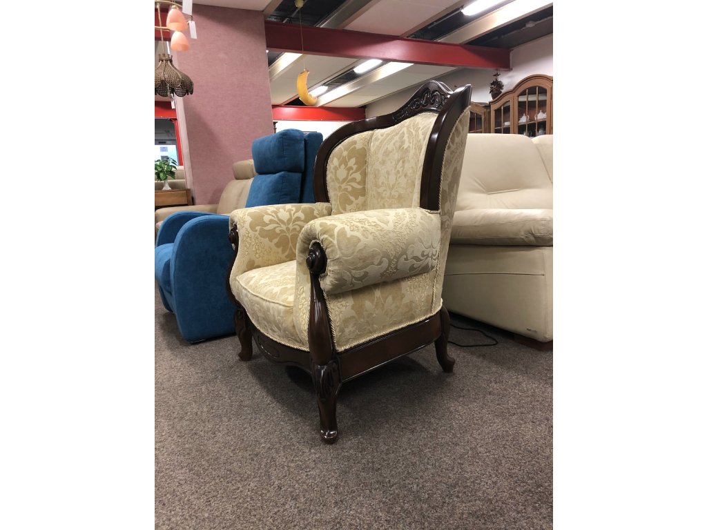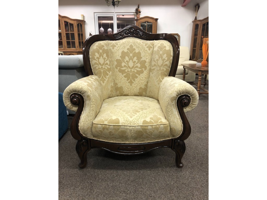 Křeslo Mery z kolekce zámeckého nábytku v barvě ořech (fotografie mohou zkreslovat, detailní foto barvy naleznete ve fotogalerii) a potahu gobelín vyrobené z masivního dřeva. Vyřezávání je ruční výroby.